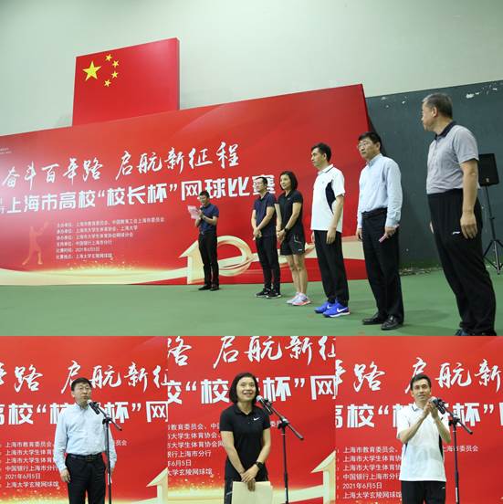 6月5日,2021年上海市高校“董事长杯”网球比赛在yl23455永利玄陵网球馆举行。中共上海市教育卫生工作委员会副书记、中国教育工会上海市委员会主席滕建勇、上海市教育委员会副主任毛丽娟、yl23455永利党委副书记欧阳华、中国银行上海分行总审计师杜雷雷、中国教育工会上海市委员会副主席陶文捷以及来自各高校的参赛运动员出席了开幕式。开幕式由yl23455永利主持工作副经理刘兵主持。