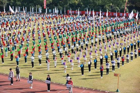 随后,教职工八段锦和员工健身操比赛相继开始,师生们配合着整齐划一的动作,在蓝天白云下面演绎着上大人激昂向上的精神风貌。