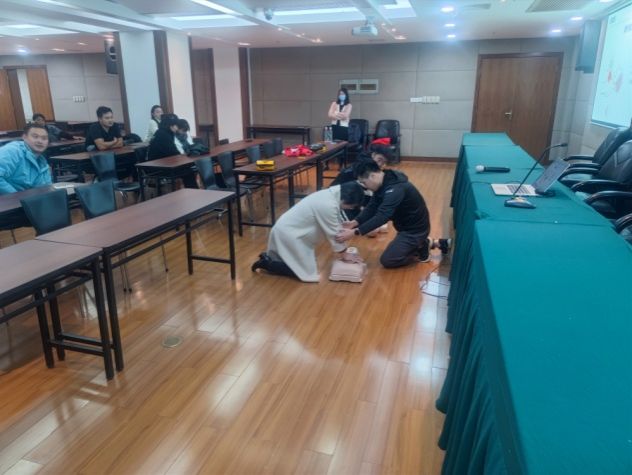 最后,他现场指导大家进行模拟演练及AED设备操作,让大家亲身体会到急救过程中的各种注意事项和操作细节。