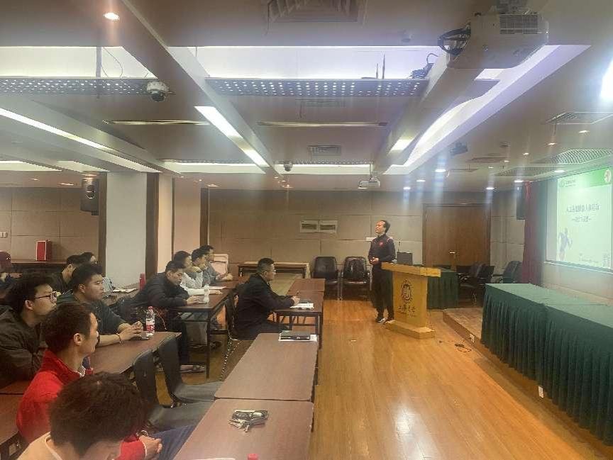 讲座伊始,黎教授首先抛出一个问题:让大家举例自己身边人工智能有哪些。根据大家的回答,黎教授将主题从我们生活工作中的人工智能逐渐引到了体育领域中的人工智能。他首先介绍了人工智能对我们生活和工作的影响。强调,当前我们的生活中人工智能已经无处不在,人工智能也给我们的工作带来了很大的帮助。接着,黎教授从运动训练、比赛分析、运动康复治疗等几个方面详细介绍了人工智能在体育领域中的应用和当前已经取得的突破性成果,并强调这些成果不仅提高了运动员的竞技水平,还为普通人的运动健康提供了更多的可能性。接着,黎教授对人工智能赋能人体运动的前景进行了讲解,特别强调了可穿戴设备在体育领域中的应用前景。最后,黎教授给大家分享了个人面对AI浪潮的策略:如积极探索在线学习资源、应用AI技术优化学习方法、掌握计算机基础知识要点、关注最新人工智能技术动态、加强专业知识以适应科技变革等。