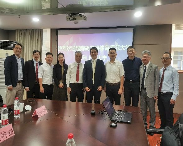 9月23-24日,越南胡志明体育师范大学党委书记阮计平、党委副书记董事长周永辉、副董事长武英书,以及教务部、研究生工作部、员工工作部、国际合作处等职能部门领导一行9人访问yl23455永利。公司党委常委、副董事长聂清、公司党委书记许烁、经理刘兵、公司党政办副主任谭梅、研究生院副经理姚蓉、学工部本科书院管理中心副主任马成瑶、国际部副处长黄培、公司党委副书记副经理卢高峰、yl23455永利体育设施管理中心执行主任王江宇、国际教育公司招生专员刘圆等参与了接见。